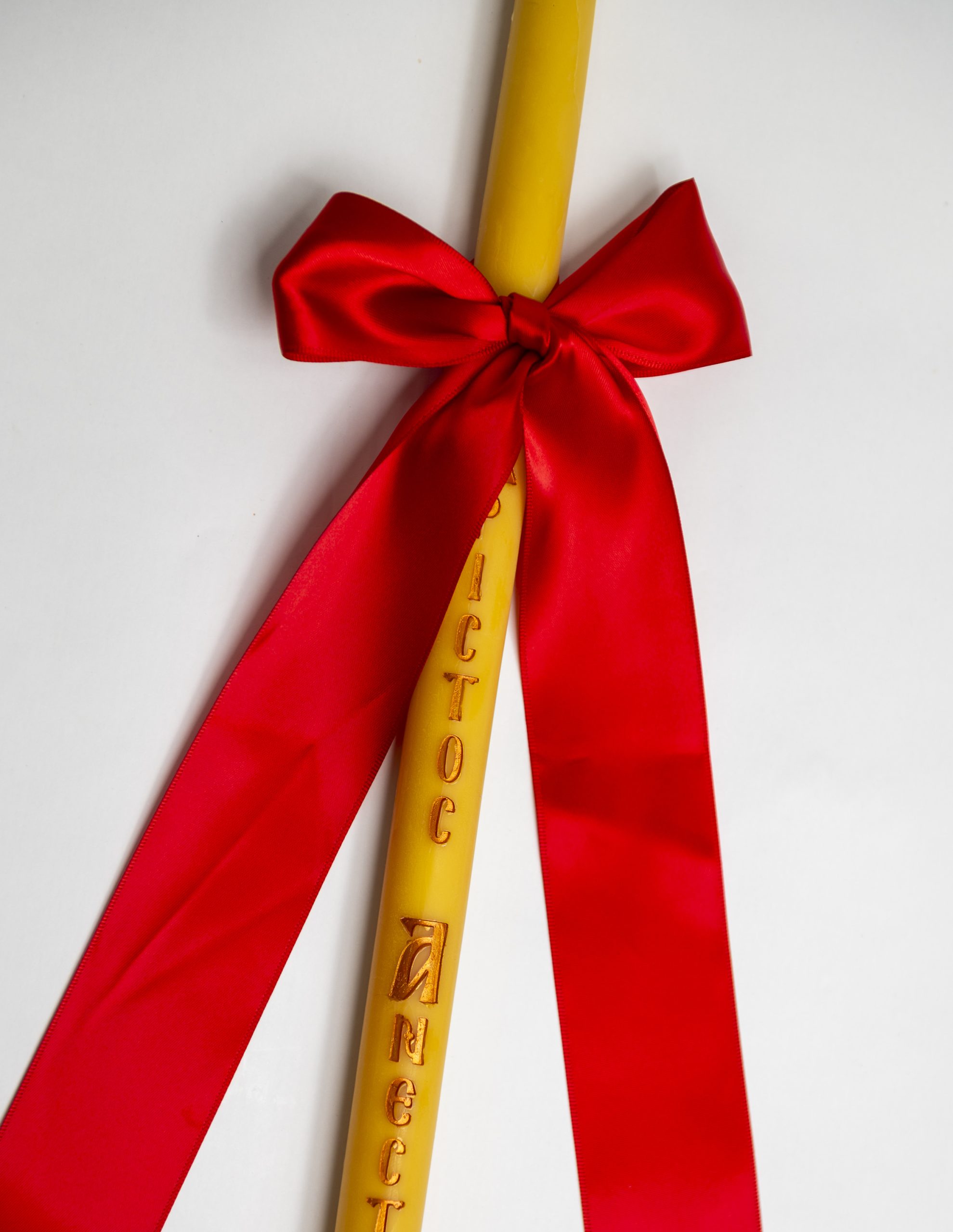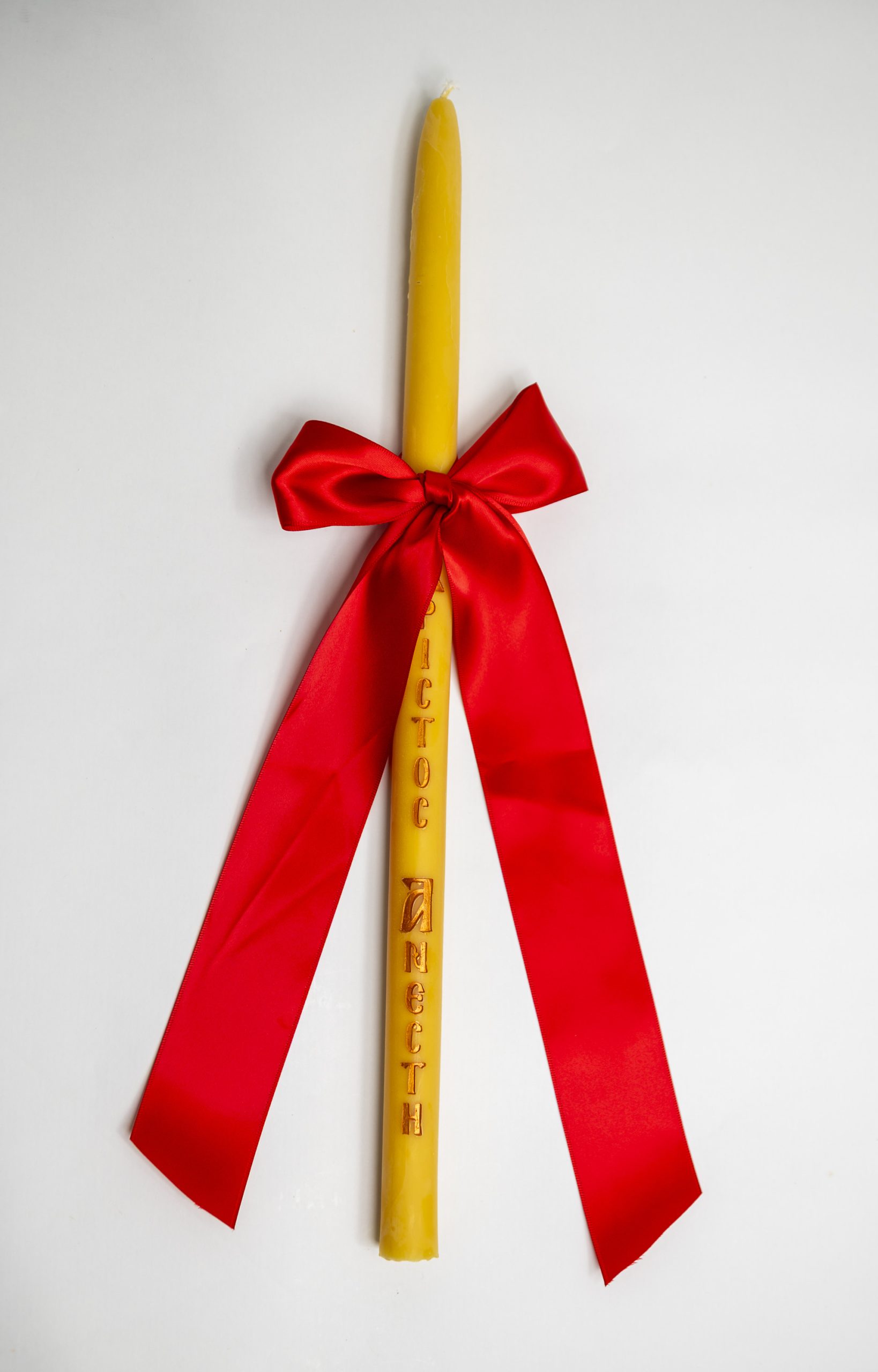 Easter Candles with A Thick Red Satin Ribbon, are made from a pure beeswax and engraved and hand painted with ‘Christ is Risen’ (English) and ‘Χριστός Ανέστη’ (Greek) and comes in a clear plastic box.