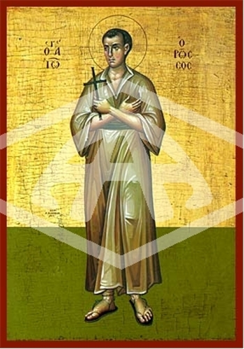 SAINT JOHN THE RUSSIAN 9293. St John was born around 1690 in the southern Russia to pious Orthodox parents. Upon reaching maturity he was called to service in the army where he was taken prisoner during the Russo-Turkish war near Caesarea in Asia Minor. John was threatened, tortured, subjected to all means to convert him to the Muslim faith but bravely endured humiliations and beatings. Noting John’s firm faith, his master’s heart softened and John was assigned to take care of his master’s stable, which also became his living quarters. John rejoiced in his small dark corner of the stable as a little paradise where he could freely pray and offer praises to the true God. Occasionally, John would leave his bed to keep vigil at the nearby Church of the St. George, and on Saturdays and Feast days receive Holy Communion. As the cavalry commander prospered, he understood his blessings and prosperity came hrough his servant John, and noted this to his fellow citizens. Foreseeing his end, John called for a priest from the church he had attended and asked to partake of the immaculate mysteries. The priest was afraid to openly bring the Eucharist into the stable. Being divinely inspired, he dug the core out of an apple and lined the cavity with beeswax and placed the communion inside. He then visited the saint at the stables and gave him Communion. After receiving communion, John fell asleep in the Lord on May 27, 1730. He was about forty years old.