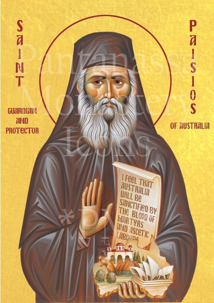 SAINT PAISIOS, GUARDIAN AND PROTECTOR OF AUSTRALIA This Icon is to celebrate the proclamation of St Paisios as the Guardian and Protector of Australia and the Holy Archdiocese of Australia, by His Eminence Archbishop Makarios of Australia in September 2023.