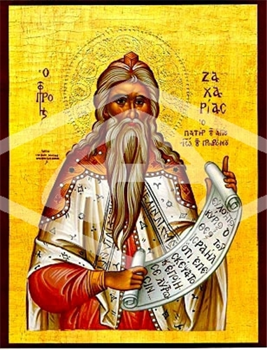 HOLY PROPHET ZACHARIAH 9462 The Prophet Zacharias served in the division of Abia in the Temple at Jerusalem, offering incense to the Lord. When the Archangel Gabriel told him that his wife, Elizabeth, who was very advanced in years and barren, would bear a son named John, Zacharias did not believe him, and so was struck dumb. In time Elizabeth conceived. The holy Prophet was killed by soldiers sent by Herod to demand that he tell them where this most special son was, as Herod sought to kill him.